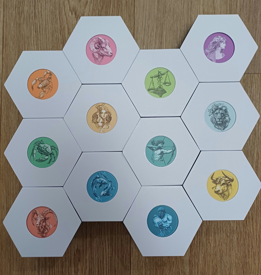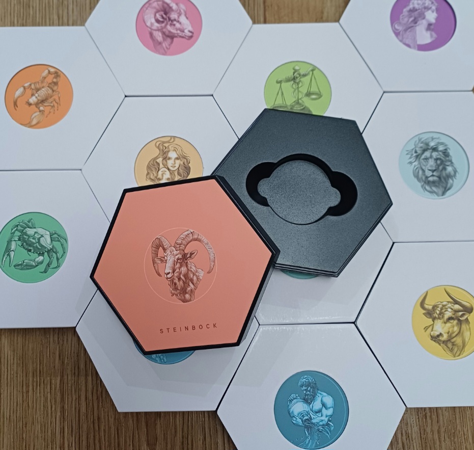 Jedes Etui ist mit dem Symbol des jeweiligen Sternzeichens versehen.